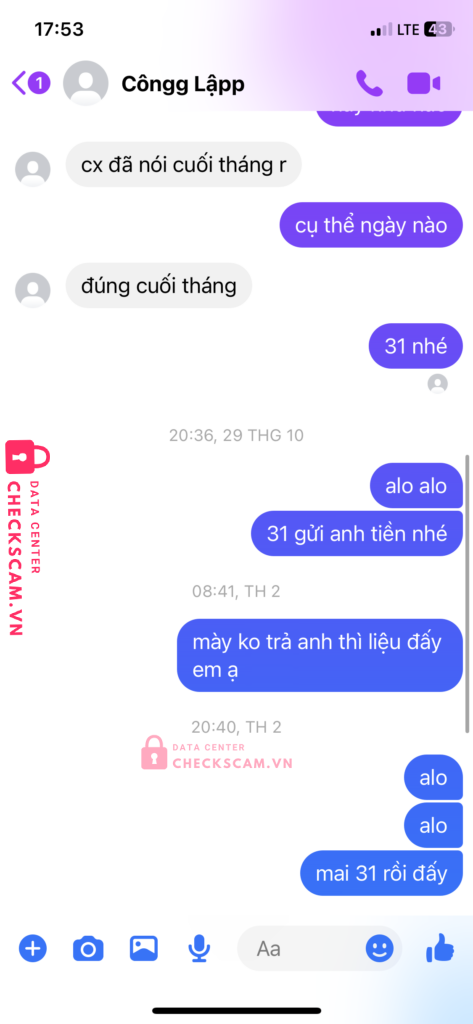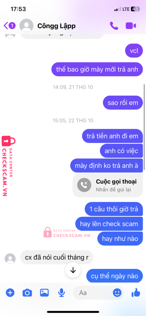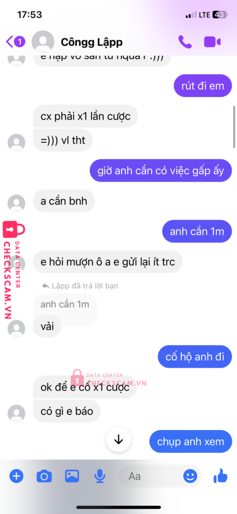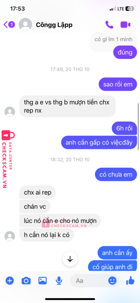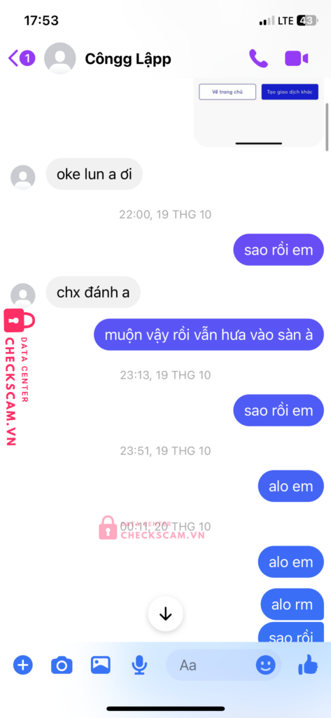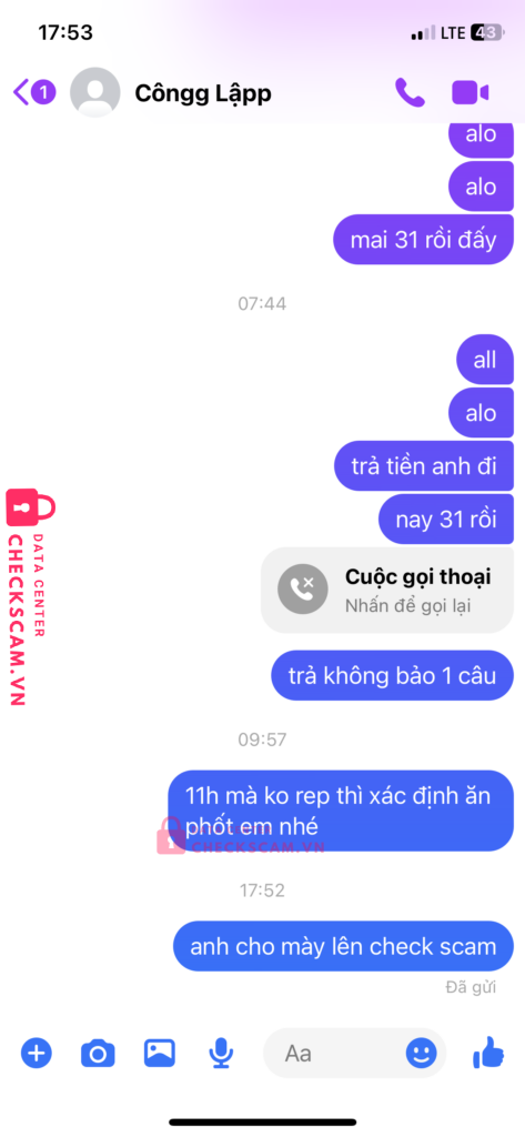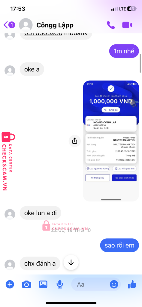 Scammer Alert: HOANG CONG LAP Reported: November 16, 2024 Scammer Information Full Name: HOANG CONG LAP Payment Gate: MB Bank Payment Account: 0376565950 Category: Marketplace scams Source: Checkscam Evidence Files Report Description vay tiền không trả scam luôn 1m Comments Your comment Add Comment No comments yet. Be the first to share your experience with this scammer.