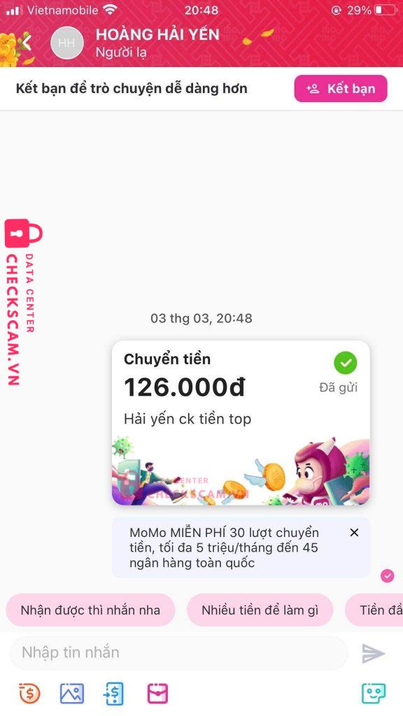 Scammer Alert: Hoàng Hải Yến Reported: November 16, 2024 Scammer Information Full Name: Hoàng Hải Yến Phone Number: 0705910998 Payment Gate: Mb Payment Account: 0705910998 Category: Marketplace scams Source: Checkscam Evidence Files Report Description Gom đồ xong block mọi người, không gửi hàng, không trả lại tiền Comments Your comment Add Comment No comments yet. Be the first to share your experience with this scammer.