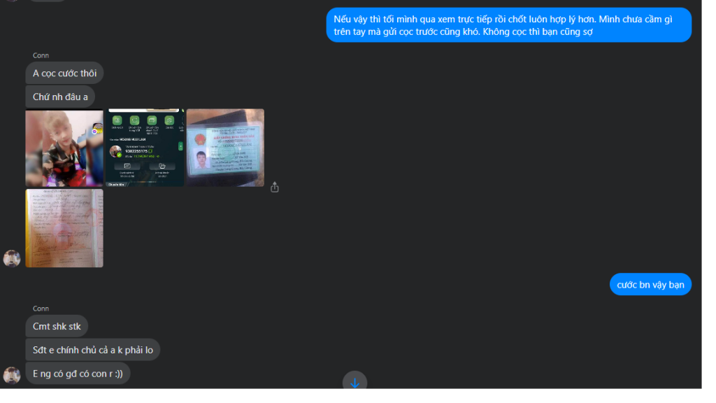 Thấy có mùi nên mình quyết định không mua nữa, đòi lại cọc. Thì đối tượng đồng ý nhưng vẫn kệ đấy.