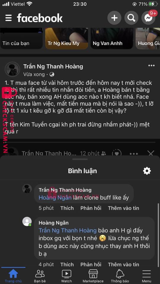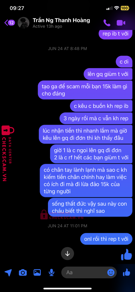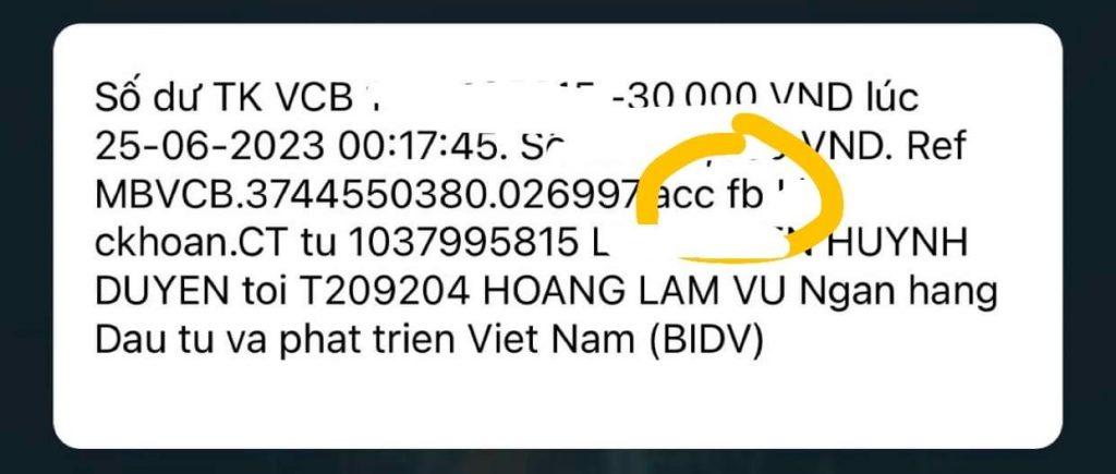 thằng này tạo GA thu mỗi người 15k (tổng là 60 người dính) xong scam rồi sủi, hẹn 19 đi đơn thì 24 vẫn không thấy đâu, spam tin nhắn thì tối 24 kêu bán acc cho ngkhac (nghi chắc diễn để khỏi rf), kêu lên bài đính chính pub bill gd acc thì thì che gần hết được 5’ gỡ, lúc đính chính kêu tên kim tuyền, lúc nói với t thì là huỳnh duyên, fb thì đổi tên thành nguyễn khánh linh