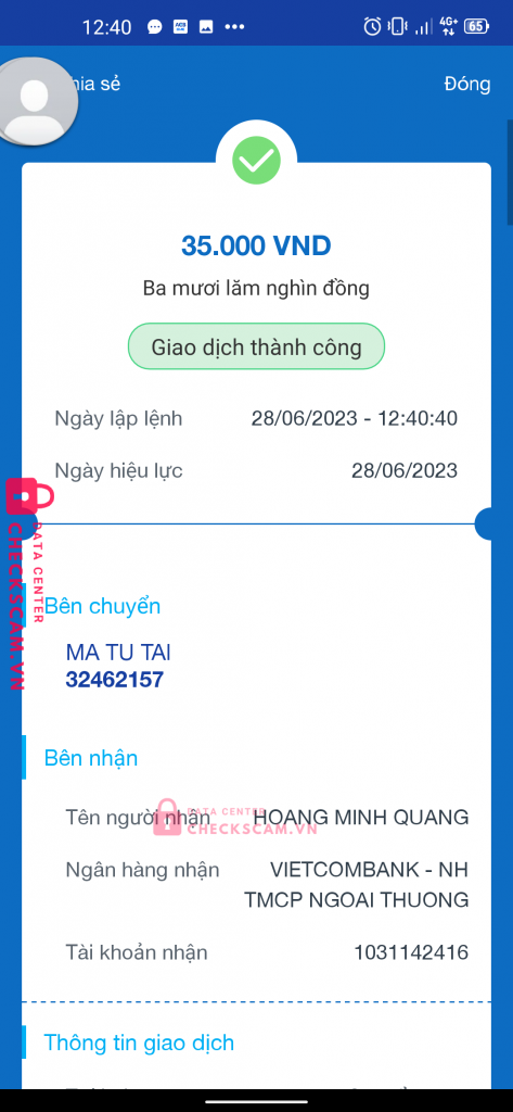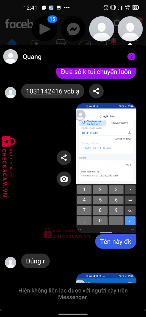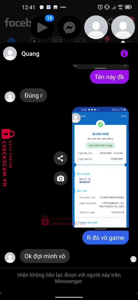 Scammer Alert: HOANG MINH QUANG Reported: November 16, 2024 Scammer Information Full Name: HOANG MINH QUANG Payment Gate: vietcombank Payment Account: 1031142416 Category: Marketplace scams Source: Checkscam Evidence Files Report Description Lừa đảo trên facebook Comments Your comment Add Comment No comments yet. Be the first to share your experience with this scammer.