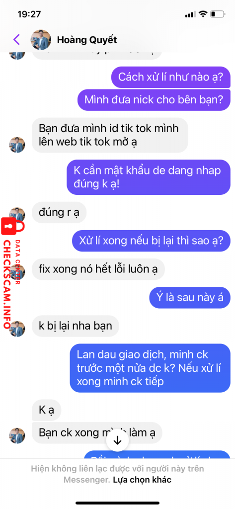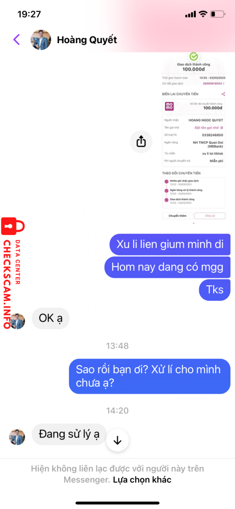 Nói xử lí acc tiktok cho mình xong chặn mình qua messenger luôn. Có 100k thôi mà thấy mình tin người thật. Gửi lên để mn cảnh giác thôi chứ k mong lấy lại