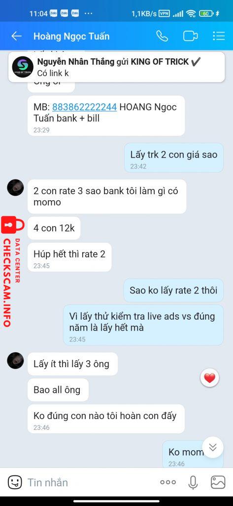 Scammer Alert: Hoàng Ngọc Tuấn Reported: November 16, 2024 Scammer Information Full Name: Hoàng Ngọc Tuấn Payment Gate: MB BANK Payment Account: 883862222244 Category: Marketplace scams Source: Checkscam Evidence Files Report Description Scam 12 nghìn ko nhiều nhưng ảnh hưởng đến người khác, sẽ có người khác lại bị lừa Comments Your comment Add Comment No comments yet. Be the first to share your experience with this scammer.