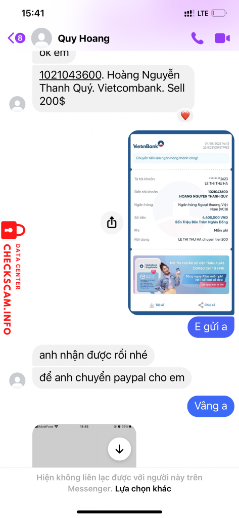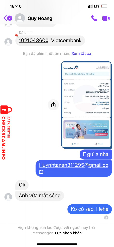 Scammer Alert: HOÀNG NGUYỄN THANH QUÝ