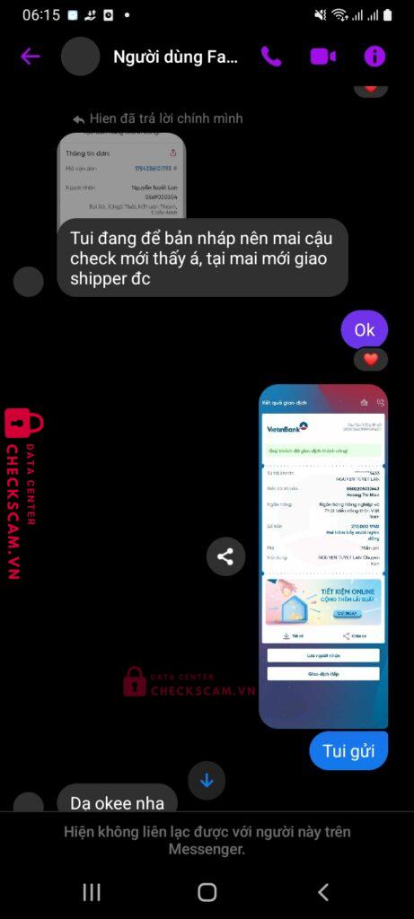 Scammer Alert: Hoang Thi Hien Reported: November 16, 2024 Scammer Information Full Name: Hoang Thi Hien Payment Gate: Agribank Payment Account: 8502205017643 Category: Marketplace scams Source: Checkscam Evidence Files Report Description Nói chuyện rất dễ nghe cho đến khi nửa đêm chặn xong xoa nick luôn ? Comments Your comment Add Comment No comments yet. Be the first to share your experience with this scammer.