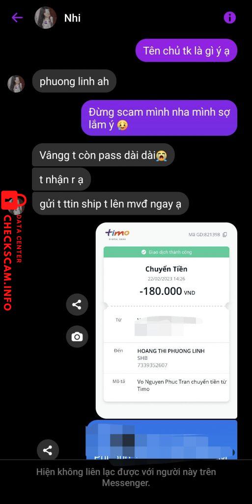 Mình mua card bts của con này, ck xong nó sủi luôn. Hôm nay check lại tn để xóa bớt mới biết nó block mình rồi. May có lưu lại link fb của nó, lấy fb khác tìm fb nó vẫn ra, có nghĩa là nó đã block mình chứng tỏ nhỏ này scam.