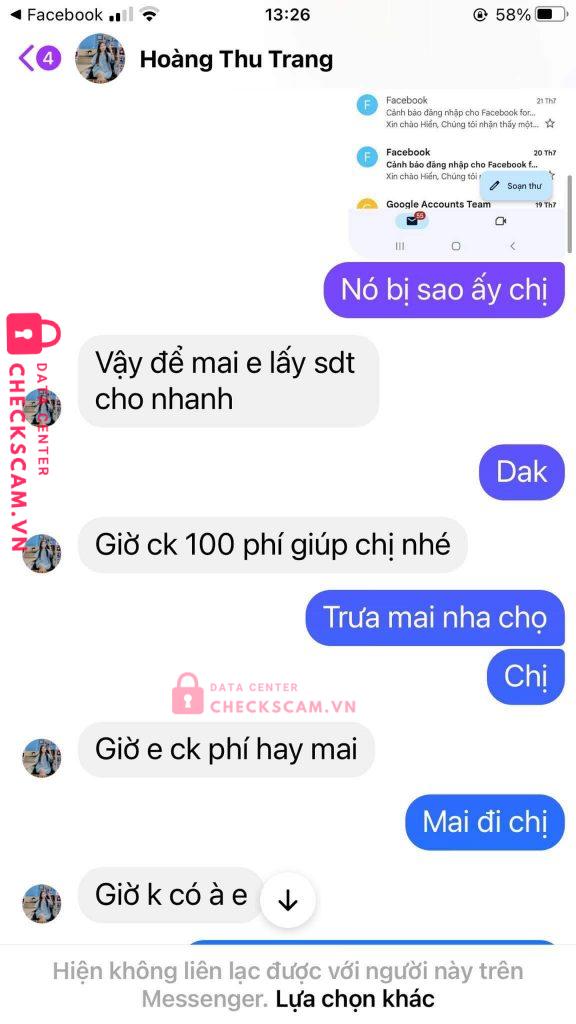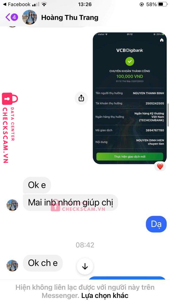 Scammer Alert: Hoàng Thu Trang Reported: November 16, 2024 Scammer Information Full Name: Hoàng Thu Trang Payment Gate: Techcombank Payment Account: 2505242505 Category: Marketplace scams Source: Checkscam Evidence Files Report Description Comments Your comment Add Comment No comments yet. Be the first to share your experience with this scammer.