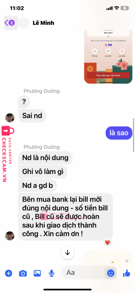 Scammer Alert: Hoang Trong Kim Reported: March 7, 2025 Scammer Information Full Name: Hoang Trong Kim Payment Gate: VP BANK Payment Account: 0926332490 Category: Marketplace scams Source: Checkscam Evidence Files Report Description Bank xog kêu gd saiii ???0 Comments Your comment Add Comment No comments yet. Be the first to share your experience with this scammer.