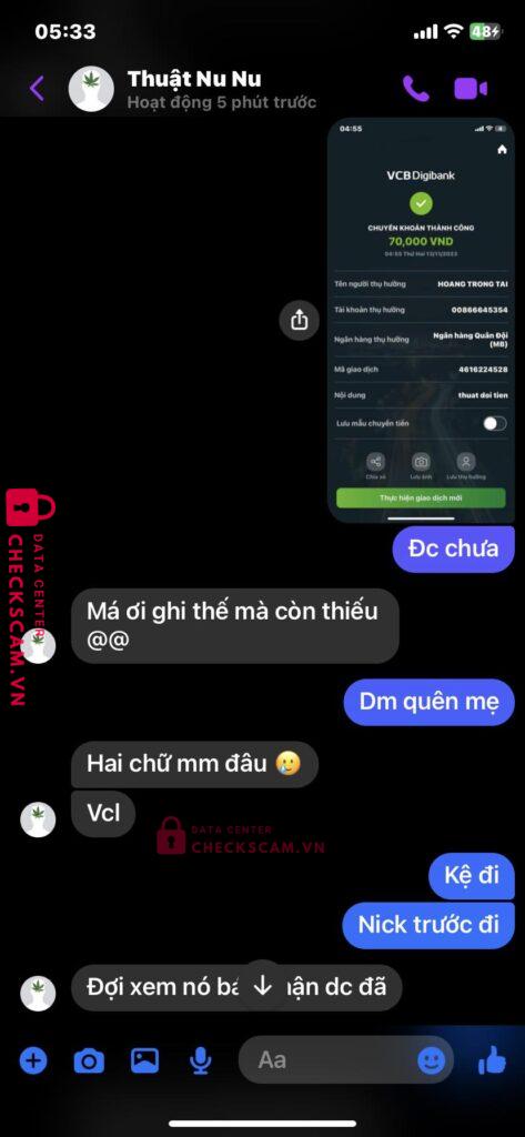 Scammer Alert: HOANG TRONG TAI Reported: November 16, 2024 Scammer Information Full Name: HOANG TRONG TAI Payment Gate: MB Bank Payment Account: 00866645354 Category: Marketplace scams Source: Checkscam Evidence Files Report Description chuyển tiền mua nick rồi kêu là tiền chưa vào rồi kêu khi nào vào nhắn lại tầm 7h sáng nhắn lại đi ăn cái đã xong mất tích luôn. Comments Your comment Add Comment No comments yet. Be the first to share your experience with this scammer.