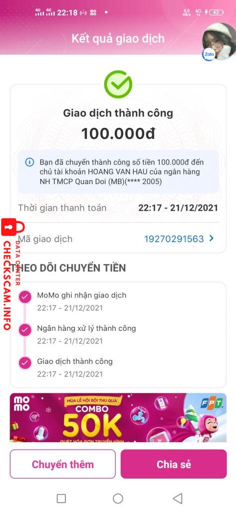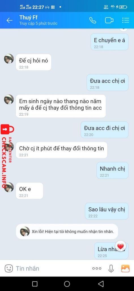 Scammer Alert: Hoang Van Hau Reported: November 16, 2024 Scammer Information Full Name: Hoang Van Hau Phone Number: 0364720419 Payment Gate: Mb bank Payment Account: 123421102005 Category: Marketplace scams Source: Checkscam Evidence Files Report Description Lừa đảo Comments Your comment Add Comment No comments yet. Be the first to share your experience with this scammer.
