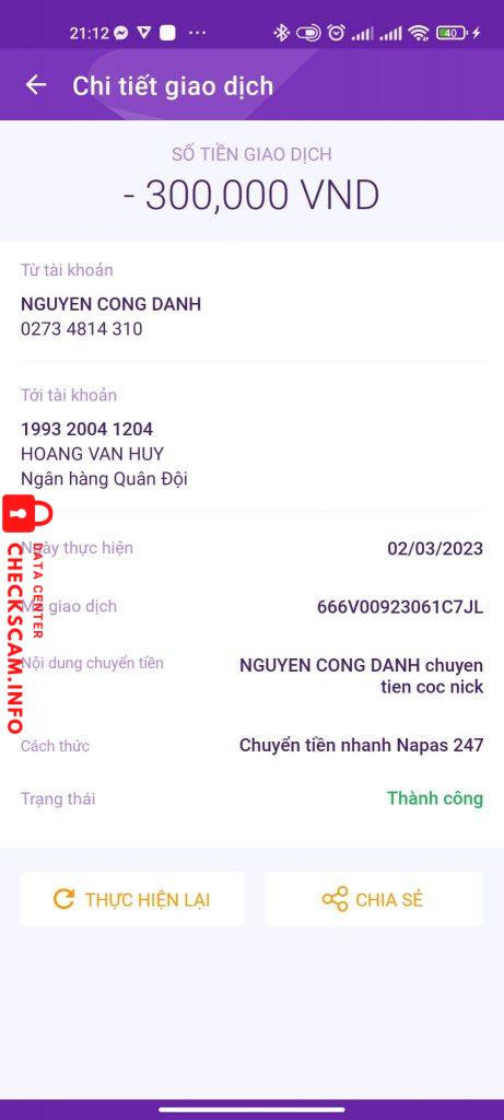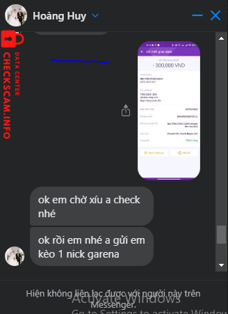 Scammer Alert: Hoàng Văn huy Reported: November 16, 2024 Scammer Information Full Name: Hoàng Văn huy Payment Gate: MB Bank Payment Account: 199320041204 Category: Marketplace scams Source: Checkscam Evidence Files Report Description Scam qua việc cày thuê LQM Comments Your comment Add Comment No comments yet. Be the first to share your experience with this scammer.