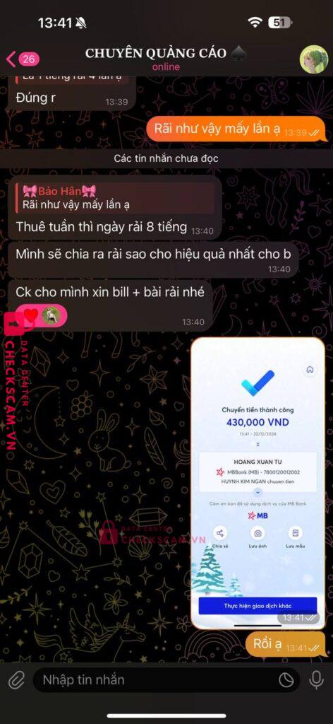 Scammer Alert: Hoang Xuan Tu Reported: March 7, 2025 Scammer Information Full Name: Hoang Xuan Tu Payment Gate: MB Bank Payment Account: 7800120012002 Category: Marketplace scams Source: Checkscam Evidence Files Report Description Lừa đảo spam quảng cáo Comments Your comment Add Comment No comments yet. Be the first to share your experience with this scammer.