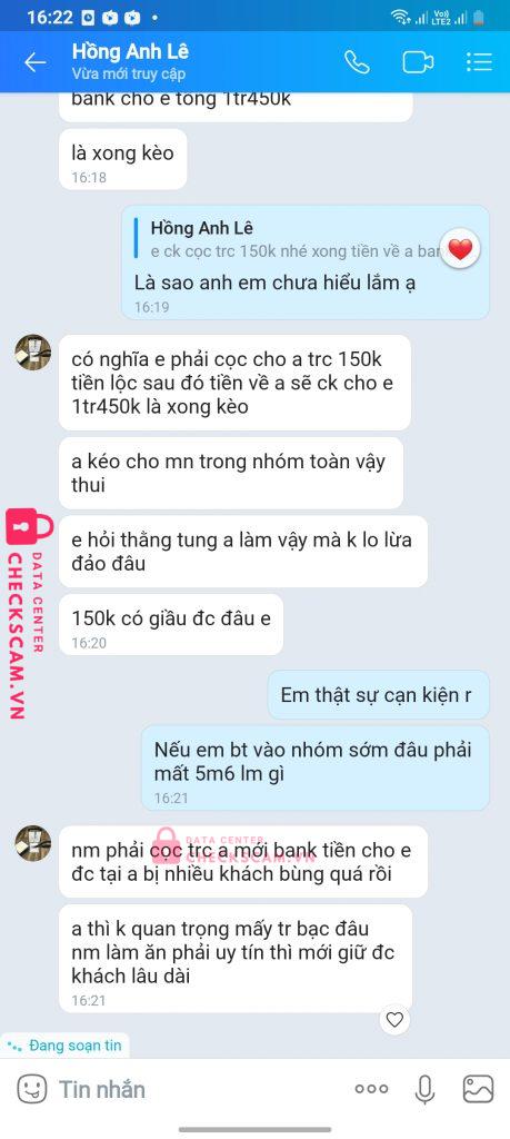 Scammer Alert: HỒNG ANH LÊ Reported: November 16, 2024 Scammer Information Full Name: HỒNG ANH LÊ Phone Number: 0859769096 Payment Gate: Acb Payment Account: 34652137 Category: Marketplace scams Source: Checkscam Evidence Files Report Description Bảo kéo tài xỉu từ 100k lên 1m4 xong cọc 160 bank 1m4 xong chuyển xong cấm chat chặt số Comments Your comment Add Comment No comments yet. Be the first to share your experience with this scammer.