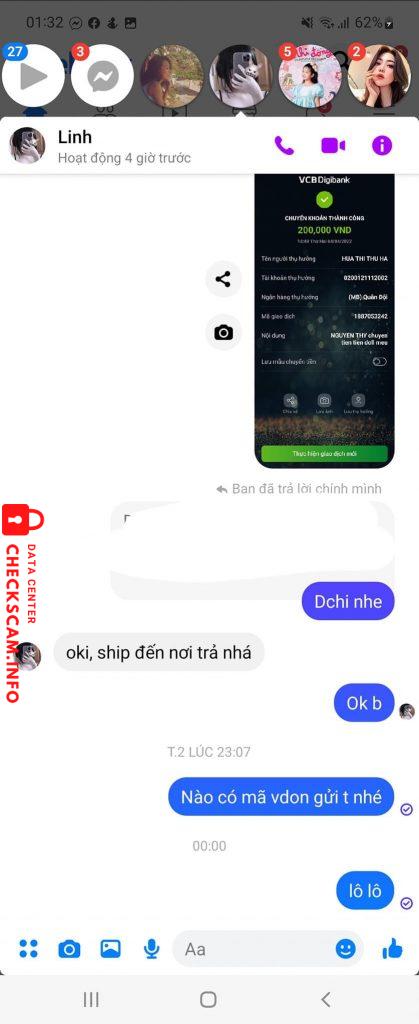 Scammer Alert: HUA THI THU HA Reported: November 16, 2024 Scammer Information Full Name: HUA THI THU HA Payment Gate: MB Bank Payment Account: 0200121112002 Category: Marketplace scams Source: Checkscam Evidence Files Report Description Lừa tiền chuyển khoản xong block ?? đã có rất nhiều người bị lừa. Lừa xong nó còn nhởn nhơ Comments Your comment Add Comment No comments yet. Be the first to share your experience with this scammer.