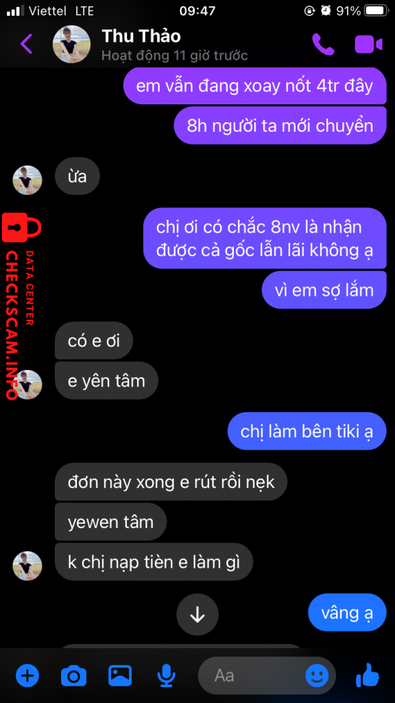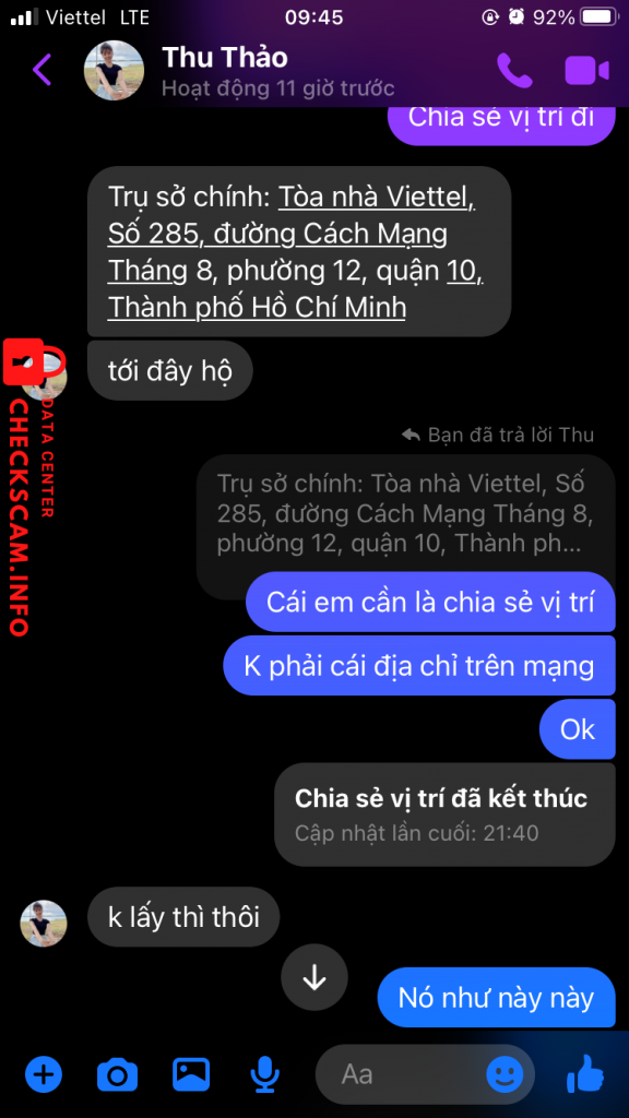 tiền nạp càng lớn gí trị đơn hàng lại càng cao lên. Rồi bên trung gian của hắn lấy địa chỉ trụ sở chính là công ty viettel số 285, đường cách mạng tháng 8, phường 12, quận 10 tp HCM để né tránh khi tôi yêu cầu gửi vị trí