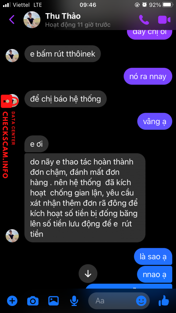 liên tục giục nạp tiền để om đơn hàng