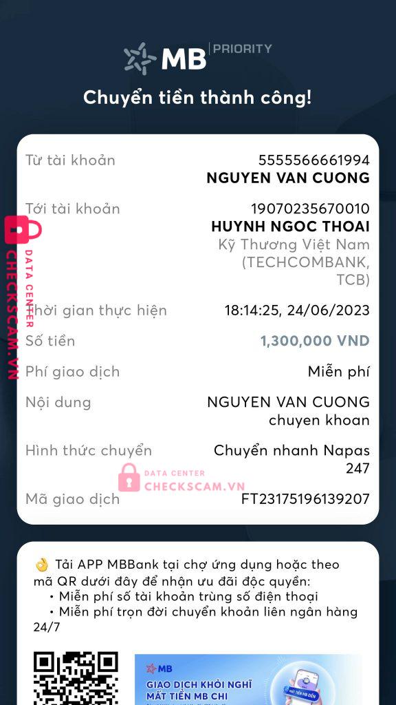 Scammer Alert: Huynh ngoc thoai Reported: November 16, 2024 Scammer Information Full Name: Huynh ngoc thoai Payment Gate: techcombank Payment Account: 19070235670010 Category: Marketplace scams Source: Checkscam Evidence Files Report Description Bán tài khoản không lên được camp nhưng không refun tiền, lấy thẻ của khách pay tài khoản của mình Comments Your comment Add Comment No comments yet. Be the first to share your experience with this scammer.