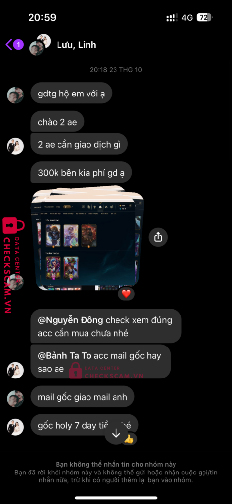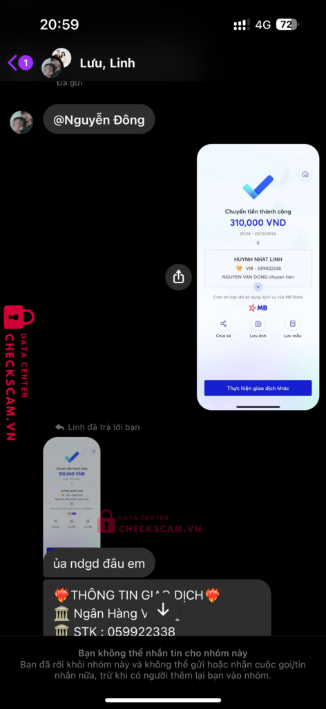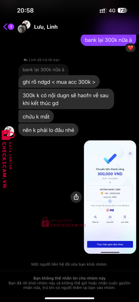 Scammer Alert: huỳnh nhật linh Reported: March 7, 2025 Scammer Information Full Name: huỳnh nhật linh Payment Gate: vib Payment Account: 059922338 Category: Marketplace scams Source: Checkscam Evidence Files Report Description mua acc nhẹ dạ nên bị lừa gdtg cũng ld luôn Comments Your comment Add Comment No comments yet. Be the first to share your experience with this scammer.