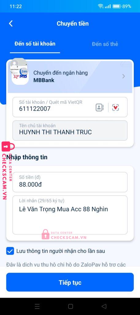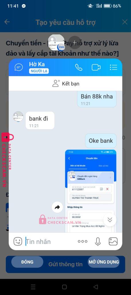 Scammer Alert: HUỲNH THỊ THANH TRÚC Reported: November 16, 2024 Scammer Information Full Name: HUỲNH THỊ THANH TRÚC Payment Gate: MbBank Payment Account: 611122007 Category: Marketplace scams Source: Checkscam Evidence Files Report Description Mua acc lần đầu 50k uy tín lần 2 thì scam 88k Comments Your comment Add Comment No comments yet. Be the first to share your experience with this scammer.