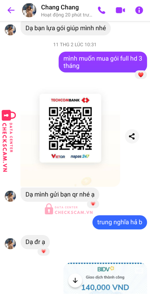 Scammer Alert: HUYNH TRUNG NGHIA Reported: March 7, 2025 Scammer Information Full Name: HUYNH TRUNG NGHIA Payment Gate: TCB Payment Account: 104874554827 Category: Marketplace scams Source: Checkscam Evidence Files Report Description Lừa đảo mua bán netflix Comments Your comment Add Comment No comments yet. Be the first to share your experience with this scammer.