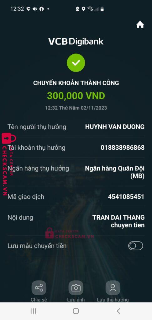 Scammer Alert: Huỳnh Văn Dương Reported: November 16, 2024 Scammer Information Full Name: Huỳnh Văn Dương Payment Gate: Quân Đội ( MB ) Payment Account: 018838986868 Category: Marketplace scams Source: Checkscam Evidence Files Report Description scam 300k bank tiền xong im lun Comments Your comment Add Comment No comments yet. Be the first to share your experience with this scammer.