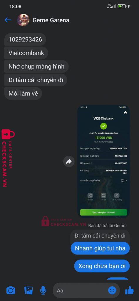 Scammer Alert: HUYNH VAN TIEN Reported: November 16, 2024 Scammer Information Full Name: HUYNH VAN TIEN Payment Gate: Vietcombank Payment Account: 1029293426 Category: Marketplace scams Source: Checkscam Evidence Files Report Description Thằng này scam bên liên quân nha mn người né nó ra nha Comments Your comment Add Comment No comments yet. Be the first to share your experience with this scammer.
