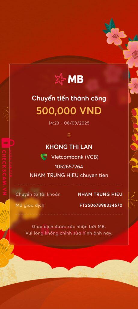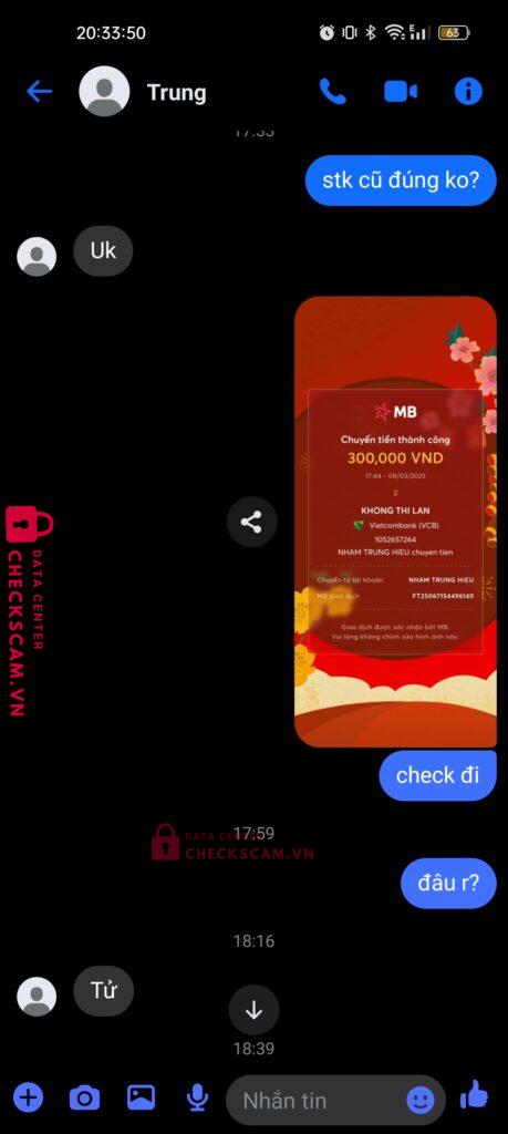 Scammer Alert: Khổng Thị Lan Reported: May 10, 2025 Scammer Information Full Name: Khổng Thị Lan Payment Gate: Vietcombank Payment Account: 1052657264 Category: Marketplace scams Source: Checkscam Evidence Files Report Description lừa đảo chiếm đoạt tài sản Comments Your comment Add Comment No comments yet. Be the first to share your experience with this scammer.