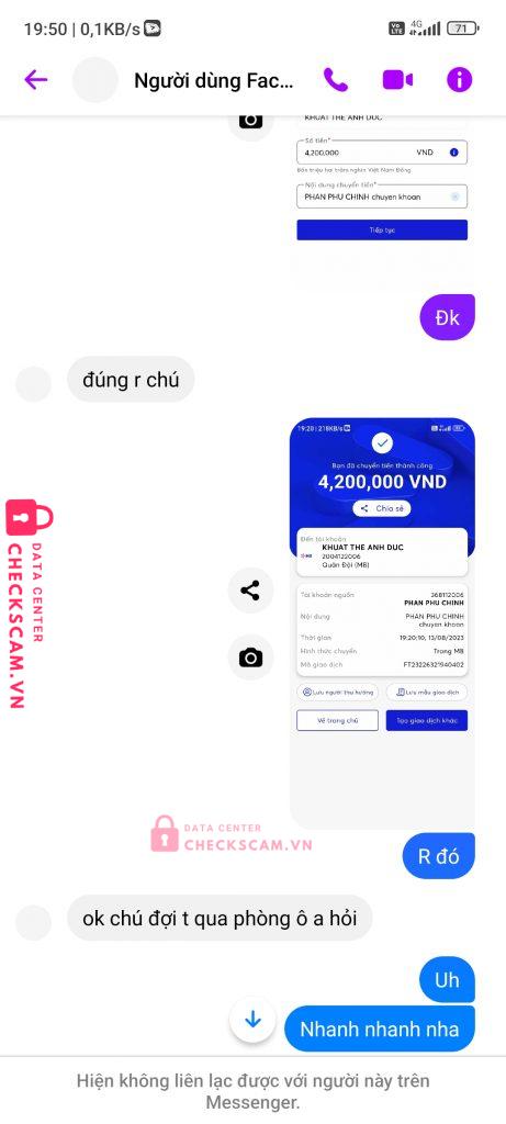 Scammer Alert: Khuat the duc Reported: November 16, 2024 Scammer Information Full Name: Khuat the duc Payment Gate: Mb bank Payment Account: 2004122006 Category: Marketplace scams Source: Checkscam Evidence Files Report Description Tôi bị lừa 4tr2 vì tôi mua ních game của bạn này tôi chuyển tiền song nó chặn tôi tôi mong là người dùng STK này sẽ bị trừng phạt đúng quy định Comments Your comment Add Comment No comments yet. Be the first to share your experience with this scammer.