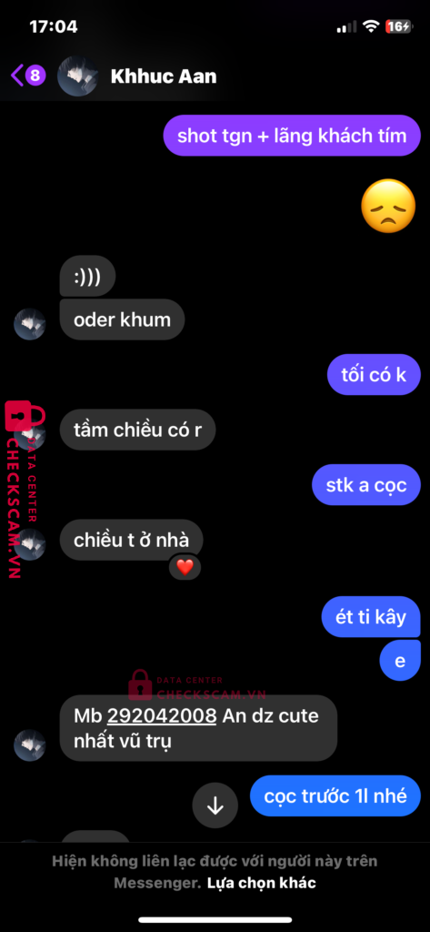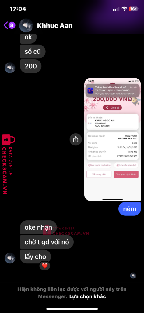 Scammer Alert: Khuc Ngoc An Reported: November 16, 2024 Scammer Information Full Name: Khuc Ngoc An Payment Gate: MB Bank Payment Account: 292042008 Category: Marketplace scams Source: Checkscam Evidence Files Report Description tin tưởng suốt từ tháng 4 mà h sc? Comments Your comment Add Comment No comments yet. Be the first to share your experience with this scammer.