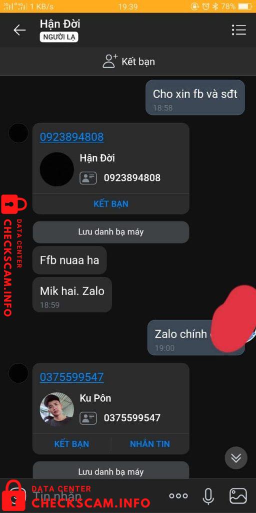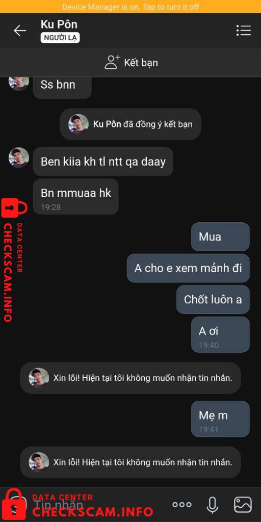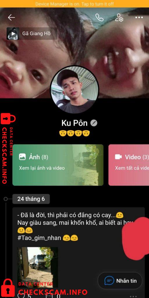 Scammer Alert: Ku Pôn Reported: November 16, 2024 Scammer Information Full Name: Ku Pôn Phone Number: 0923894808 Payment Gate: ZaloPay Payment Account: 0375599547 Category: Marketplace scams Source: Checkscam Evidence Files Report Description Lừa đảo nhà mn Comments Your comment Add Comment No comments yet. Be the first to share your experience with this scammer.