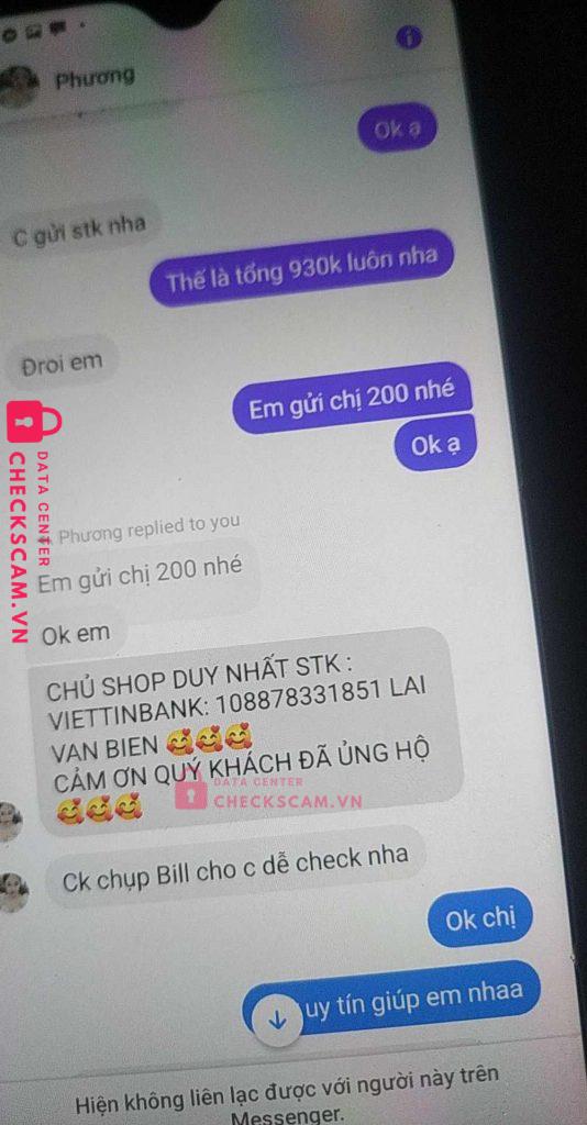 Scammer Alert: LAI VAN BIEN Reported: November 16, 2024 Scammer Information Full Name: LAI VAN BIEN Payment Gate: VIETINBANK Payment Account: 108878331851 Category: Marketplace scams Source: Checkscam Evidence Files Report Description Lừa tiền Comments Your comment Add Comment No comments yet. Be the first to share your experience with this scammer.