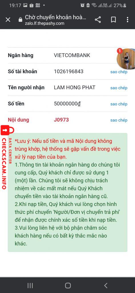 Scammer Alert: Lâm Hồng Phát Reported: November 16, 2024 Scammer Information Full Name: Lâm Hồng Phát Payment Gate: Vietcombank Payment Account: 1026196843 Category: Marketplace scams Source: Checkscam Evidence Files Report Description Lừa đảo bằng web Comments Your comment Add Comment No comments yet. Be the first to share your experience with this scammer.