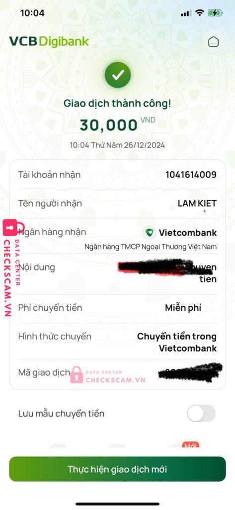 Scammer Alert: Lam Kiet Reported: March 7, 2025 Scammer Information Full Name: Lam Kiet Payment Gate: Vietcombank Payment Account: 1041614009 Category: Marketplace scams Source: Checkscam Evidence Files Report Description Đăng bài đấu giá baby three , win vào đòi cọc ship mới đi đơn , cọc xong thì block Comments Your comment Add Comment No comments yet. Be the first to share your experience with this scammer.