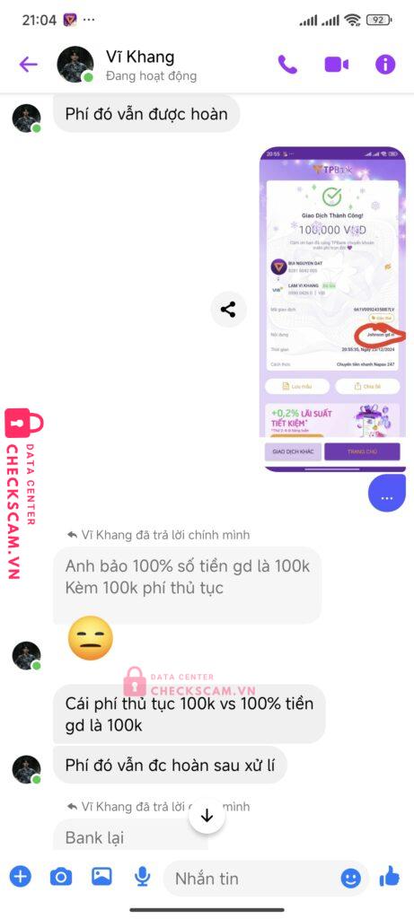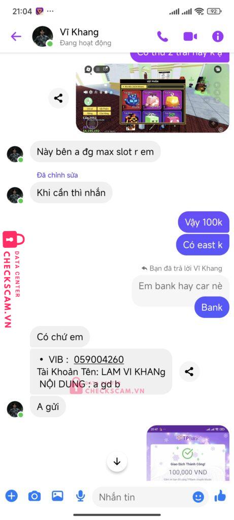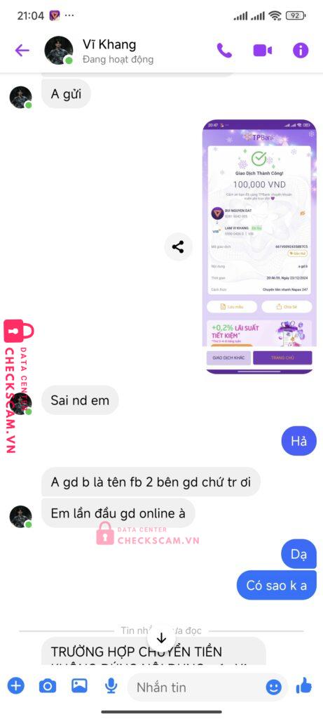 Scammer Alert: Lâm Vĩ Khang Reported: March 7, 2025 Scammer Information Full Name: Lâm Vĩ Khang Payment Gate: VIB Payment Account: 059004260 Category: Marketplace scams Source: Checkscam Evidence Files Report Description Lấy lý do sai nội dung để lấy cớ kêu chuyển thêm Comments Your comment Add Comment No comments yet. Be the first to share your experience with this scammer.