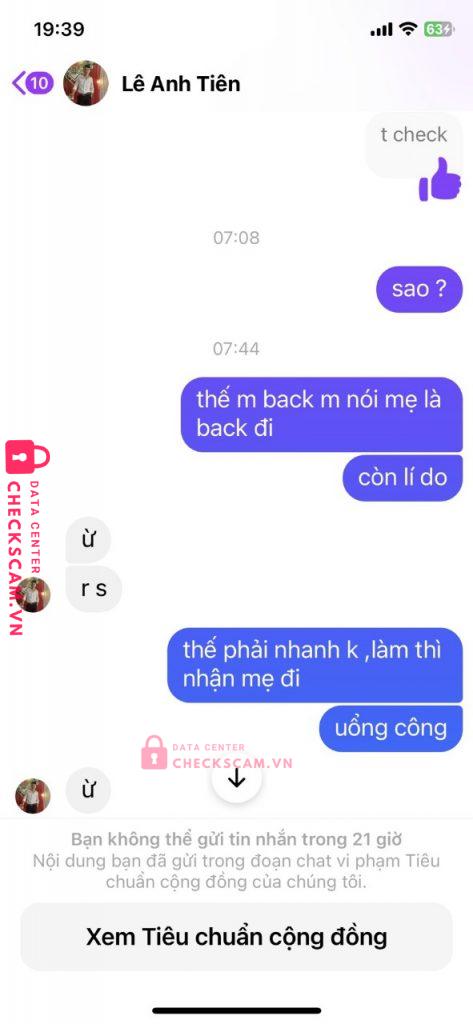 Scammer Alert: Lê Anh Tiên Reported: November 16, 2024 Scammer Information Full Name: Lê Anh Tiên Payment Gate: Mb Bank Payment Account: 430062007 Category: Marketplace scams Source: Checkscam Evidence Files Report Description Lừa đảo ,bán acc xong back. Comments Your comment Add Comment No comments yet. Be the first to share your experience with this scammer.