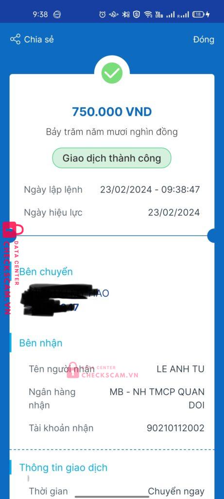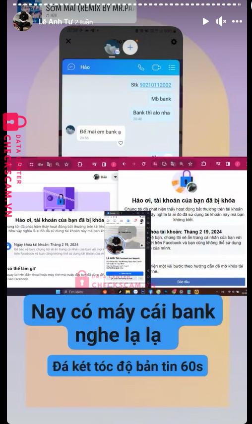 Lê Anh Tư nhận mở acc FB bị khóa nhưng không mở được, hứa hẹn hoàn tiền nhưng sủi luôn. Ngoài tài khoản này ra, Lê Anh Tư còn dùng thêm nhiều tài khoản ngân hàng khác và momo để lừa đảo.