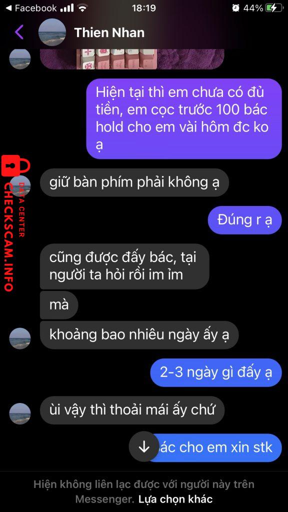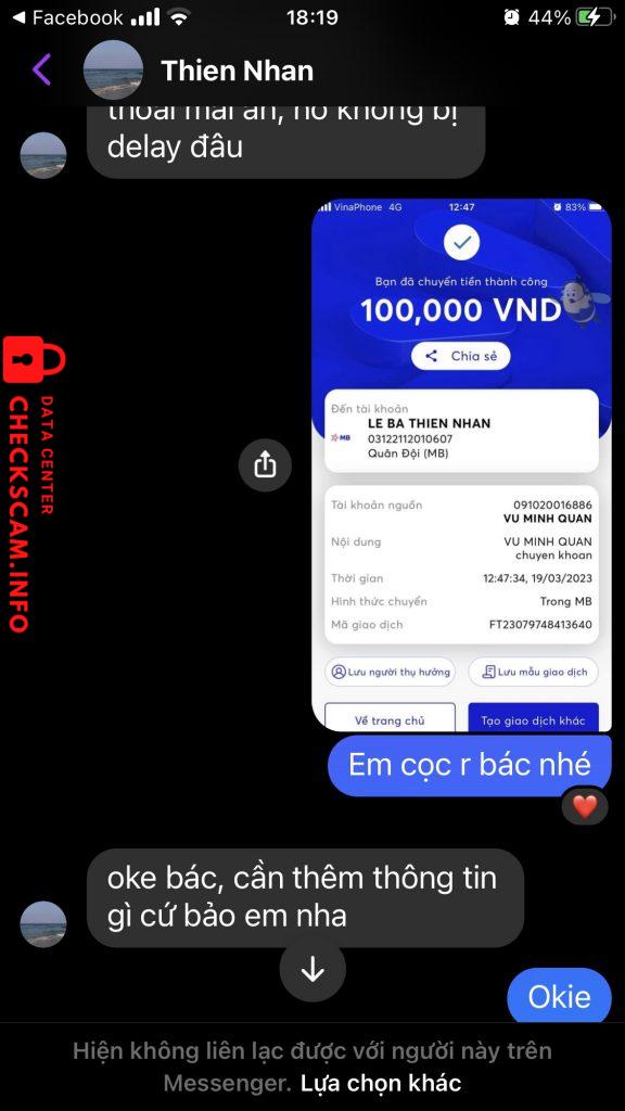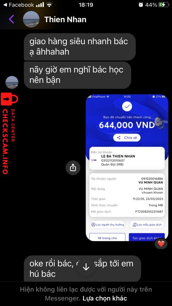 Scammer Alert: LE BA THIEN NHAN Reported: November 16, 2024 Scammer Information Full Name: LE BA THIEN NHAN Payment Gate: MB Bank Payment Account: 03122112010607 Category: Marketplace scams Source: Checkscam Evidence Files Report Description Chụp ảnh quay video gửi hàng trước, tạo đơn hàng để người bị scam yên tâm rồi sau đó huỷ đơn Comments Your comment Add Comment No comments yet. Be the first to share your experience with this scammer.