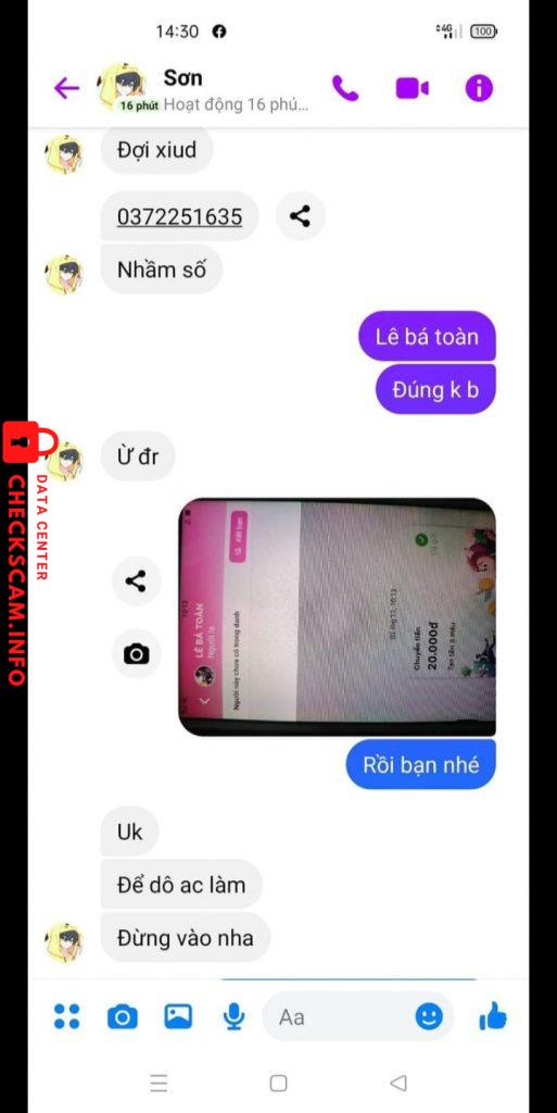 Scammer Alert: Le Ba Toan Reported: November 16, 2024 Scammer Information Full Name: Le Ba Toan Phone Number: 0372251635 Payment Gate: MOMO Payment Account: 0372251635 Category: Marketplace scams Source: Checkscam Evidence Files Report Description Lừa đảo mua acc gửi tiền qua rồi ko chịu đưa tài khoản Comments Your comment Add Comment No comments yet. Be the first to share your experience with this scammer.
