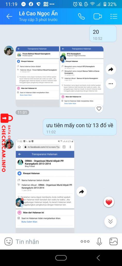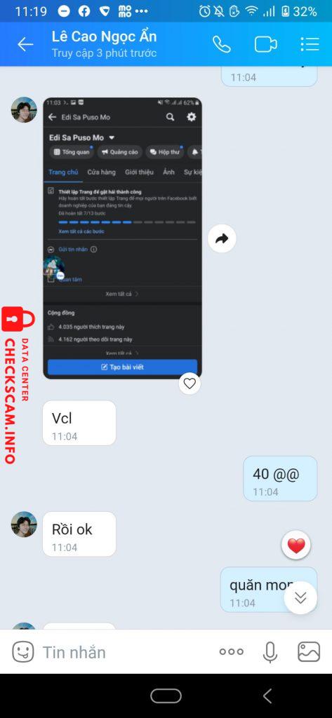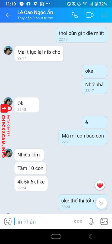 Scammer Alert: Le Cao Ngoc An Reported: November 16, 2024 Scammer Information Full Name: Le Cao Ngoc An Phone Number: 0383383107 Payment Gate: Momo Payment Account: 0383383107 Category: Marketplace scams Source: Checkscam Evidence Files Report Description Bán Page cổ set xong gỡ block Comments Your comment Add Comment No comments yet. Be the first to share your experience with this scammer.