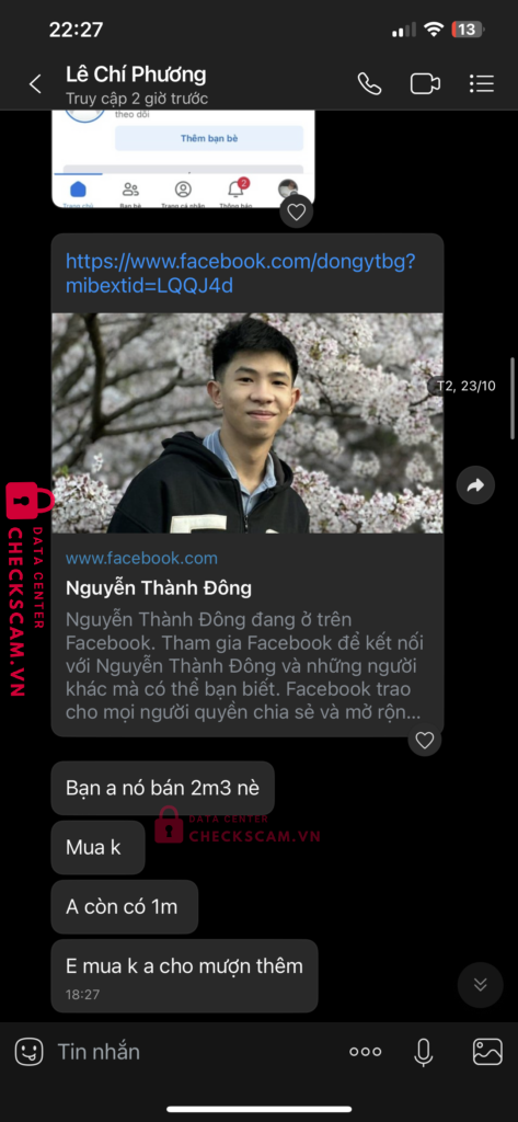 Scammer Alert: LE CHI PHUONG Reported: November 16, 2024 Scammer Information Full Name: LE CHI PHUONG Payment Gate: MB BANK Payment Account: 109200299999 Category: Marketplace scams Source: Checkscam Evidence Files Report Description Tuy quen nhau lâu nhưng anh này vẫn scam em 1 triệu, e mua acc fb của ảnh . Comments Your comment Add Comment No comments yet. Be the first to share your experience with this scammer.