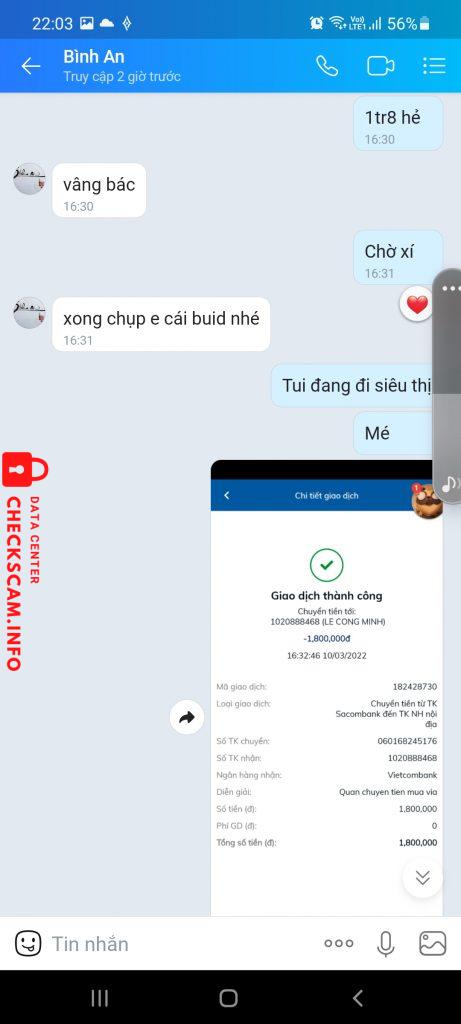 Scammer Alert: Lê Công Minh Reported: November 16, 2024 Scammer Information Full Name: Lê Công Minh Phone Number: 0868995642 Payment Gate: vietcombank Payment Account: 1020888468 Category: Marketplace scams Source: Checkscam Evidence Files Report Description Em mua 180 via việt về sau đó bị back lại hết. và không liên lạc lại được vs ng này ạ Comments Your comment Add Comment No comments yet. Be the first to share your experience with this scammer.