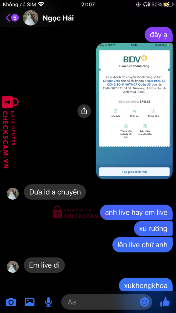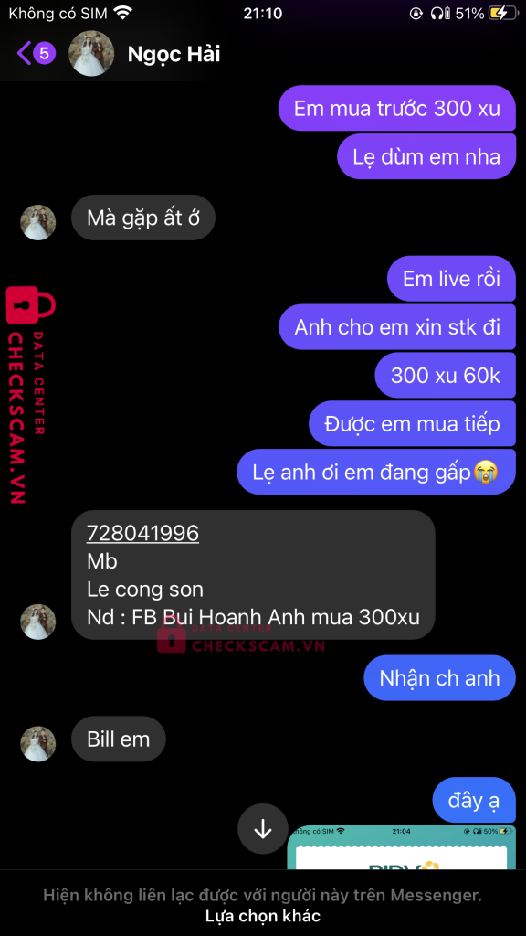 Scammer Alert: Le Cong Son Reported: November 16, 2024 Scammer Information Full Name: Le Cong Son Payment Gate: Mbbank Payment Account: 728041996 Category: Marketplace scams Source: Checkscam Evidence Files Report Description scam xu tiktok, mọi người né nhé Comments Your comment Add Comment No comments yet. Be the first to share your experience with this scammer.