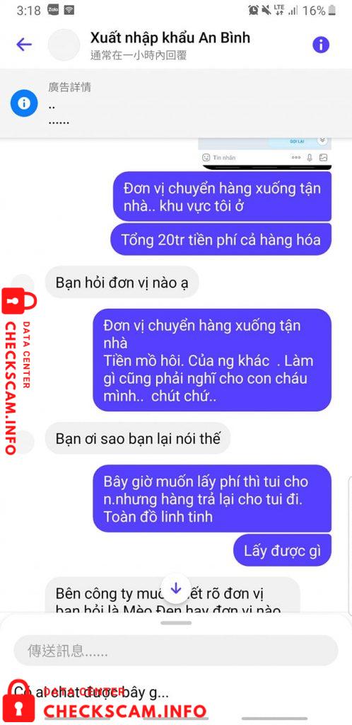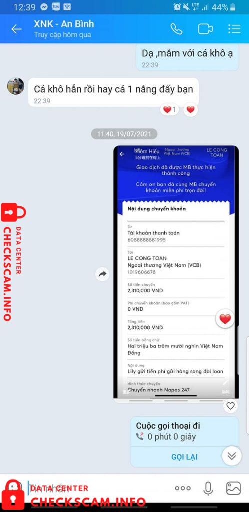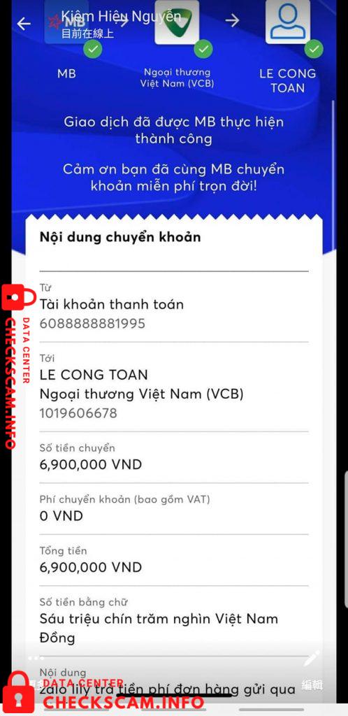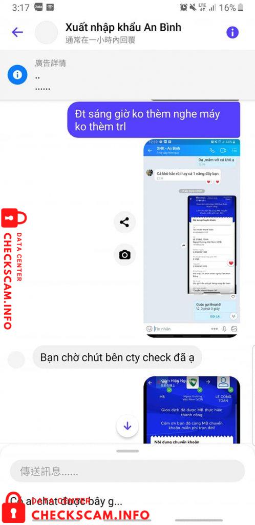 Scammer Alert: Le Cong Toan Reported: November 16, 2024 Scammer Information Full Name: Le Cong Toan Payment Gate: Vietcombank Payment Account: 1019606678 Category: Marketplace scams Source: Checkscam Evidence Files Report Description Gốc lừa đảo..nhận hàng nhận phí của e rồi chặn e luôn ah.. Ai biết chỗ này lại lấy hàng về dùm e. E tặng 5tr uống cà phê ạ… Comments Your comment Add Comment No comments yet. Be the first to share your experience with this scammer.