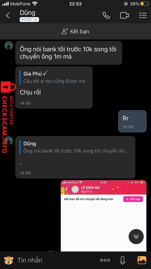 Scammer Alert: Lê Đình Bá Reported: November 16, 2024 Scammer Information Full Name: Lê Đình Bá Phone Number: 0961026626 Payment Gate: Momo Payment Account: 0961026626 Category: Marketplace scams Source: Checkscam Evidence Files Report Description Scam Bán Xu TDS. Dù Chỉ 10k, Nhưng Ae Hãy Chú Ý Nhé. Comments Your comment Add Comment No comments yet. Be the first to share your experience with this scammer.