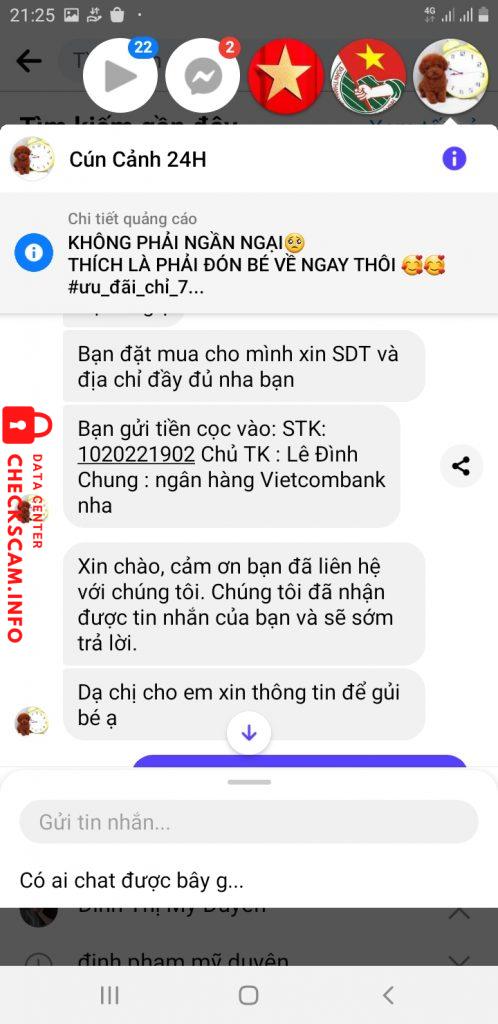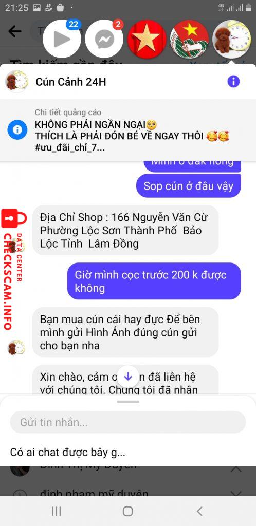 Mình có đặt mua một con cún cưng nói hôm nay19.11 giao hàng cho mình đén giờ không liên hệ được mình đã cọc 200k mình rất bực chỉ vì 200k mà nó lại lừa mình như vây