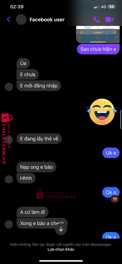 Scammer Alert: LE DINH HIEU Reported: November 16, 2024 Scammer Information Full Name: LE DINH HIEU Phone Number: 0965885382 Payment Gate: MB Bank Payment Account: 8836368386 Category: Marketplace scams Source: Checkscam Evidence Files Report Description Lừa rất nhiều người trong ngày hôm qua Comments Your comment Add Comment No comments yet. Be the first to share your experience with this scammer.