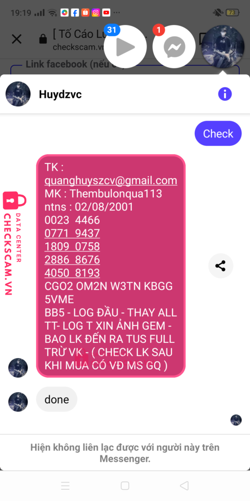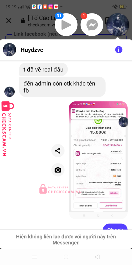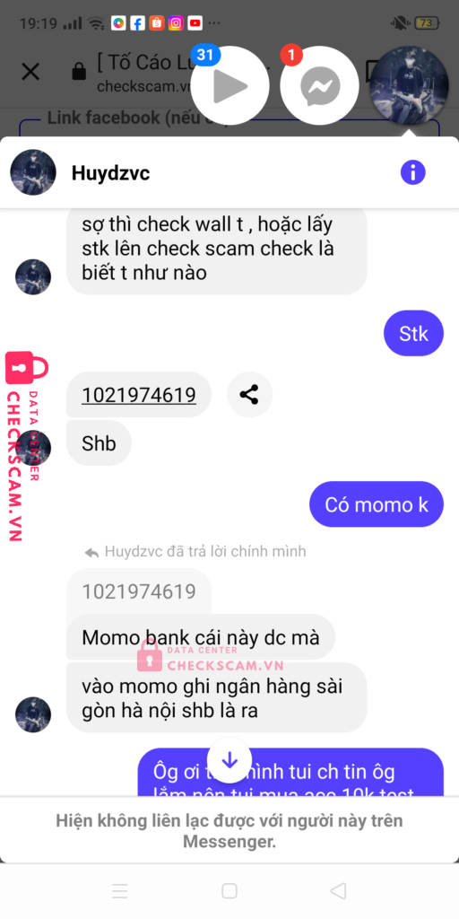 Scammer Alert: LE DINH HOI Reported: November 16, 2024 Scammer Information Full Name: LE DINH HOI Payment Gate: SHB Payment Account: 1021974619 Category: Marketplace scams Source: Checkscam Evidence Files Report Description Lỏ 15k cũng scam Comments Your comment Add Comment No comments yet. Be the first to share your experience with this scammer.