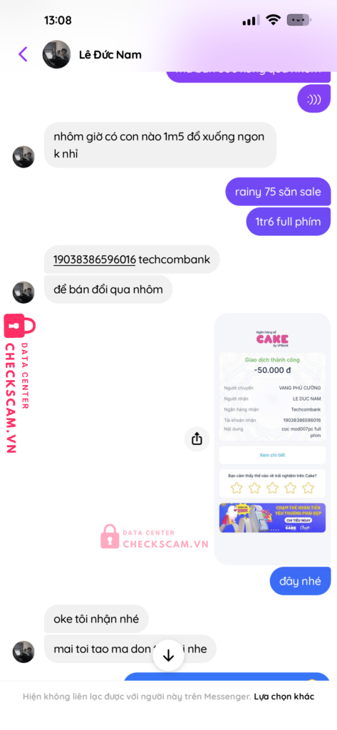 Scammer Alert: Lê Đức Nam Reported: November 16, 2024 Scammer Information Full Name: Lê Đức Nam Payment Gate: Techcombank Payment Account: 19038386596016 Category: Marketplace scams Source: Checkscam Evidence Files Report Description cọc 50k bank xong block , nhân phẩm rẻ rách thua cả 50k Comments Your comment Add Comment No comments yet. Be the first to share your experience with this scammer.