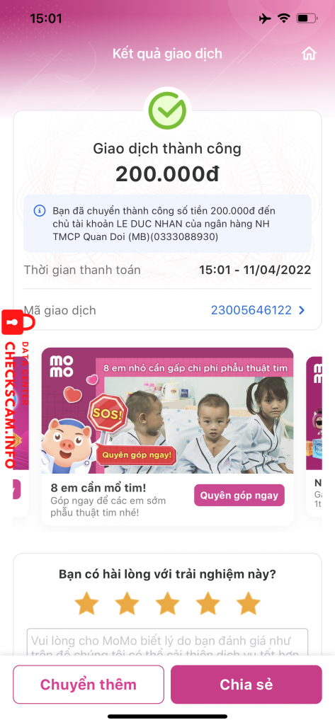 Scammer Alert: LE DUC NHAN Reported: November 16, 2024 Scammer Information Full Name: LE DUC NHAN Phone Number: 0333088930 Payment Gate: MB Bank Payment Account: 0333088930 Category: Marketplace scams Source: Checkscam Evidence Files Report Description Fake Facebook đi scam Comments Your comment Add Comment No comments yet. Be the first to share your experience with this scammer.