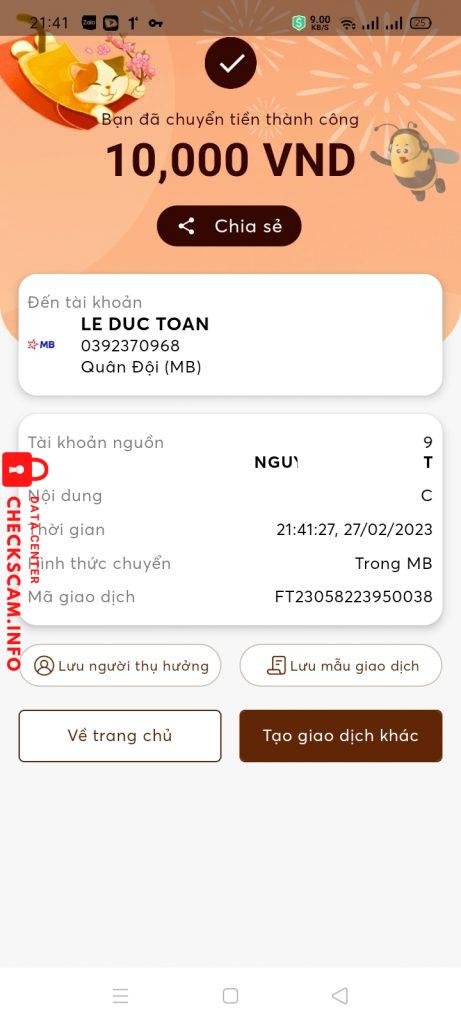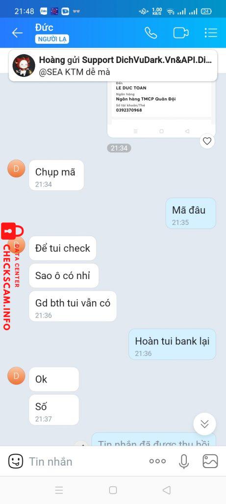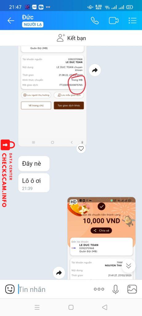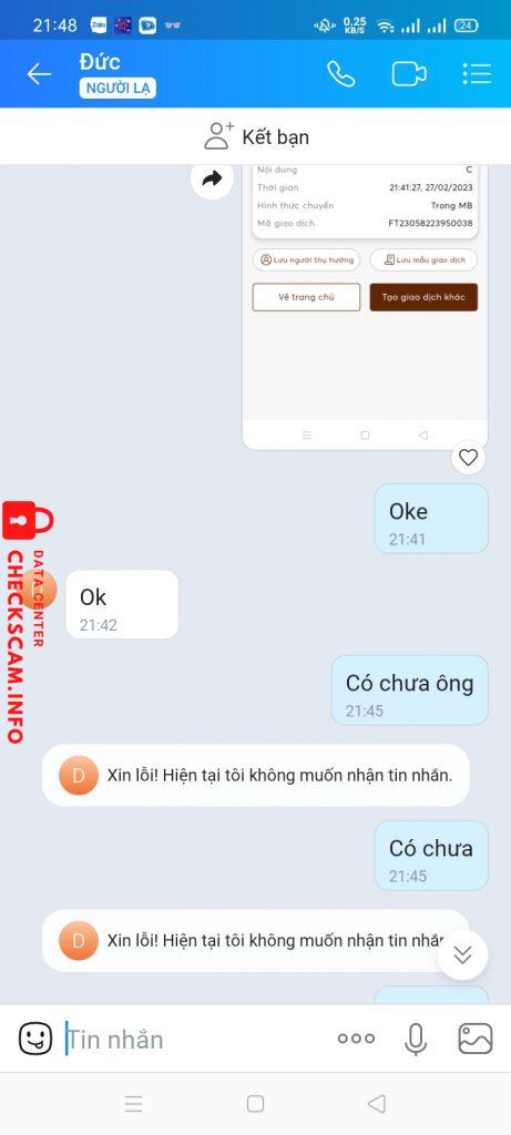 Scammer Alert: Lê Đức Toàn Reported: November 16, 2024 Scammer Information Full Name: Lê Đức Toàn Phone Number: 0392370968 Payment Gate: Mb Bank Payment Account: 0392370968 Category: Marketplace scams Source: Checkscam Evidence Files Report Description Scam Rác sống vậy có ngày quả báo luật nhân quả không chừa 1 ai Comments Your comment Add Comment No comments yet. Be the first to share your experience with this scammer.